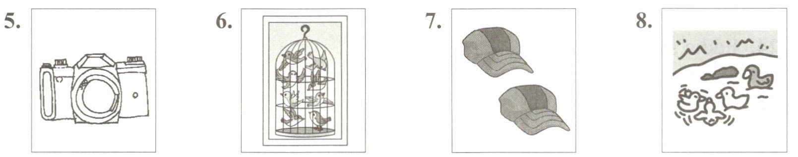 5. photos/pictures 6. aviary 7. caps 8. pond