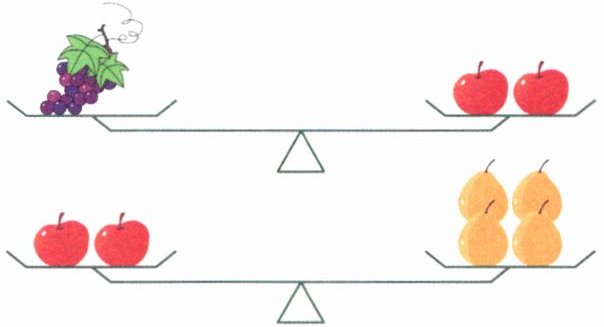 6. 一串葡萄的质量等于2个苹果的质量,4个梨的质量等于2个苹果的质量,一个梨重200克,一串葡萄重多少克?