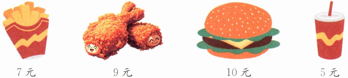① 华华买了一份薯条、一份鸡翅和一杯可乐,需要付多少钱?