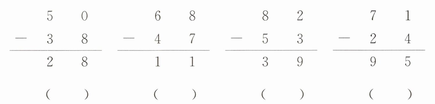 $47 - 28 = $ $65 - 27 = $ $93 - 53 = $ $48 - 45 = $
