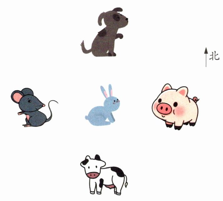 (1) 小海面向东站着,他向左转,又向右转,这时他面向(