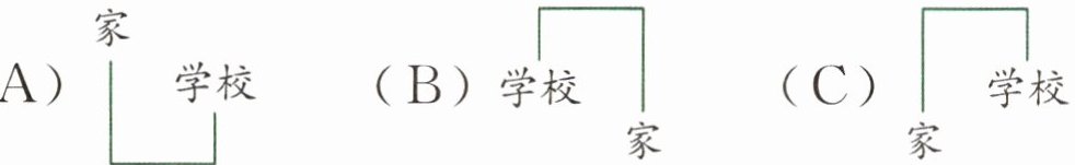 (3) 欢欢从家出发,先向北走了一段路,再向东走了一段路,然后向南走了一段路到达学校,欢欢走的路线应该是( )。