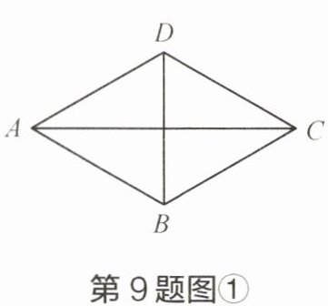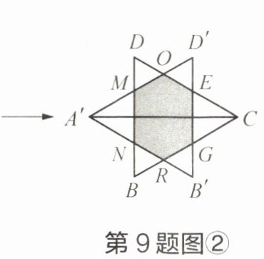 9 如图①,$\triangle ABD和\triangle CBD$都是边长为 1 的等边三角形,将$\triangle ABD沿AC方向平移到\triangle A^{\prime} B^{\prime} D^{\prime}$的位置,得到图②,那么阴影部分的周长为 。