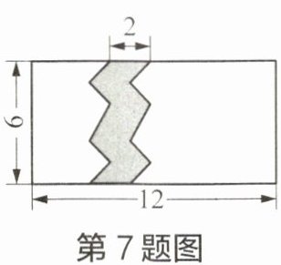 7 如图,已知长方形的两边长分别为$12\mathrm{cm}$、$6\mathrm{cm}$,那么阴影部分的面积(阴影部分间距均匀)是 。