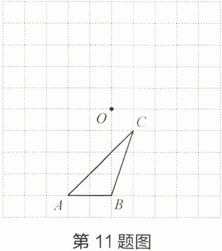 11 如图,分别画出$△ABC绕点O顺时针旋转90^{\circ}和180^{\circ}$后的图形。