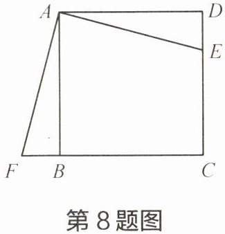 8 如图,四边形$ABCD是边长为1$的正方形,$△ABF是△ADE$逆时针旋转后得到的图形,那么线段$AD$扫过的面积是____。(结果保留$π$)
