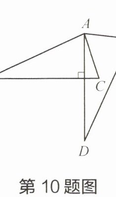 10 如图,将$△ABC绕点A旋转一定角度后得到△ADE$,如果$∠CAE= 60^{\circ},∠E= 65^{\circ},AD⊥BC$,那么$∠BAC$的度数为____。