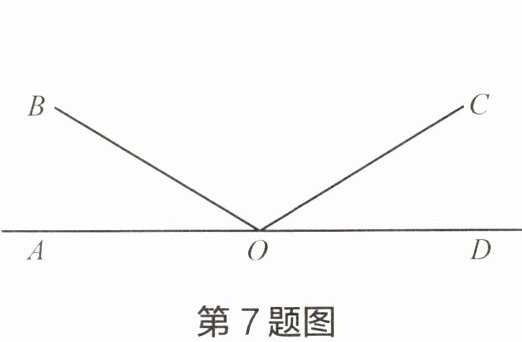 7 如图,已知$∠AOB= 35^{\circ}$,如果将$∠AOB绕点O顺时针旋转到∠COD$的位置时,点$A$、$O$、$D$恰好在同一直线上,那么旋转角的大小为____度。