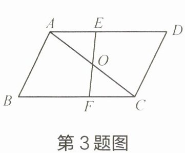 3 如图,已知△ABC 与△CDA 关于点 O 对称,过点 O 作直线 EF 分别交 AD、BC 于点 E、F,下面的说法:①点 E 和点 F,点 B 和点 D 关于点 O 成中心对称;②直线 BD 必经过点 O;③四边形 DEOC 与四边形 BFOA 的面积必相等;④△AOE 与△COF 成中心对称,其中正确的个数有( )。
