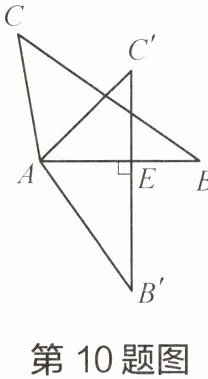 10 如图,将$\triangle ABC绕点A顺时针旋转55^{\circ}得到\triangle AB'C'$,如果$B'C'\perp AB于点E$,那么$\angle B$的度数是______。