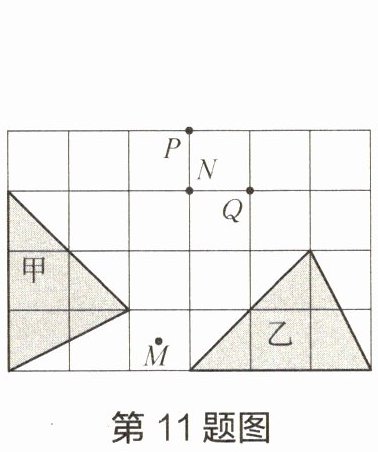 11 如图,在$6×4$的方格纸中,格点三角形甲经过旋转后得到格点三角形乙,那么旋转中心是______。