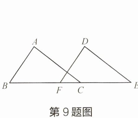9 如图,$\triangle ABC向右平移与\triangle DFE$重合,如果$BE= 12$,$FC= 2$,那么$CE= $______。