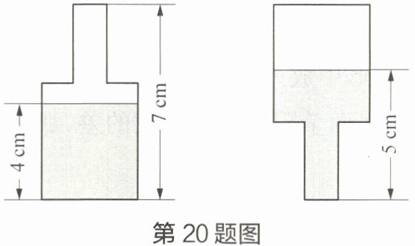 20 一个盖着瓶盖的瓶子里面装着一些水(如下图所示),瓶底的面积为$a cm^{2}$,根据图中标明的数据可求得瓶子的容积是____$cm^{3}$。