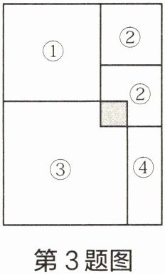 3 如图,将三种大小不同的正方形纸片①、②、③和一张长方形纸片④,平铺在长方形桌面上,重叠部分(图中阴影部分)是正方形,如果要求长方形桌面长与宽的差,只需知道( )。