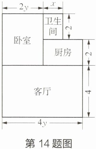 14 一套房子的地面结构如图所示,根据图中的数据(单位:m),解答下列问题: