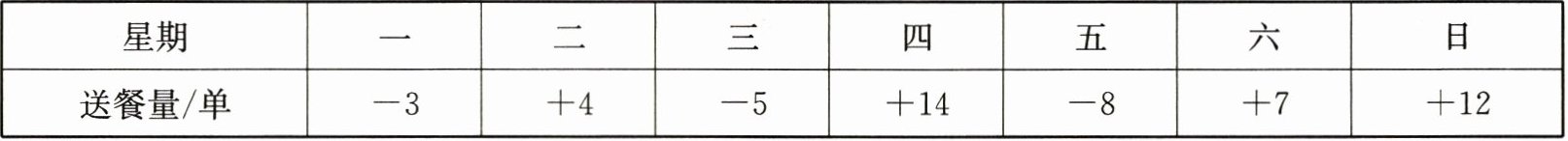 |送餐量/单|-3|+4|-5|+14|-8|+7|+12|
