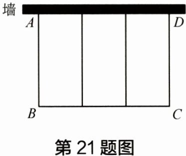 21 如图,要利用一面墙(墙长为$25$米)建花坛,用$100米的围栏围成总面积为400$平方米的三个大小相同的矩形花坛,问:花坛的边长$AB$、$BC$分别是多少米?