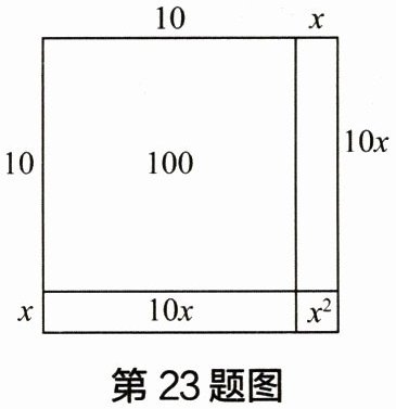 因为图中 $ S_{正方形} = 10^{2} + 2×10·x + x^{2} $,$ S_{正方形} = 107 $,