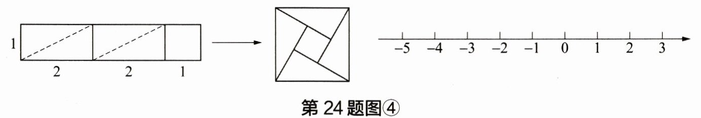 (3) 拓展思考:通过动手操作,小敏同学把长为 5,宽为 1 的长方形进行裁剪,拼成如图④所示的正方形,则请借鉴材料中的方法在数轴上找到表示 $ \sqrt{5} - 1 $ 的点 $ P $。(保留作图痕迹并标出必要线段长)