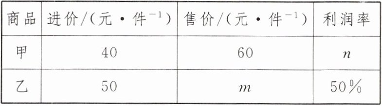1. 某超市销售甲、乙两种商品,两种商品的相关信息如下表: