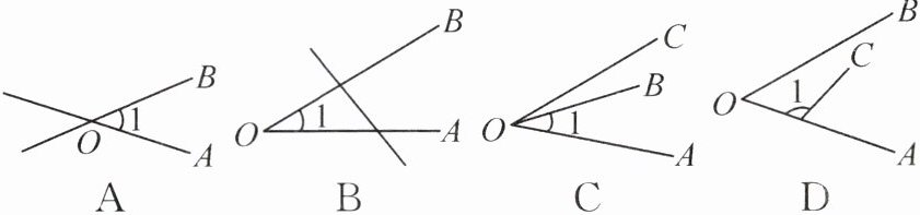 2. 下列图形中,能用$∠1$,$∠AOB$,$∠O$三种方法表示同一个角的是(