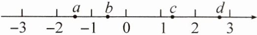 9. 有理数 $a$,$b$,$c$,$d$ 在数轴上的对应点的位置如图所示,则 $abc$