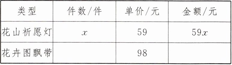 (1)设购买了$x$件花山祈愿灯,请补全下面的表格: