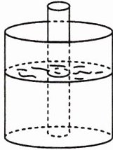 解:设容器内的水将升高x cm.由题意,得π×$10^2$×12+π×$2^2$(12+x)=π×$10^2$(12+x).整理,得1200+4(12+x)=100(12+x),解得x=0.5.