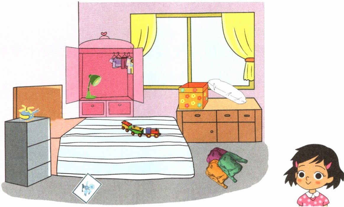 Look at Shenshen's room. What a mess! Let's tidy her room together.