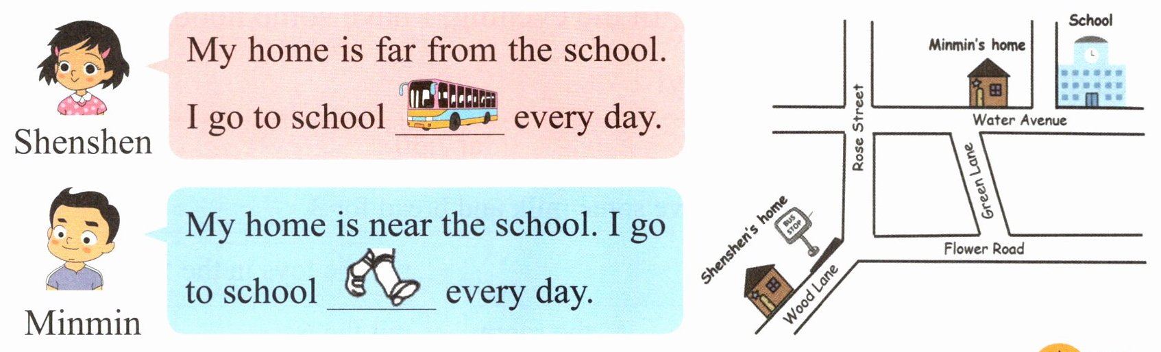 Ⅱ. Look and say(请你根据地图信息,说一说 Shenshen 和 Minmin 分别是如何去上学的)