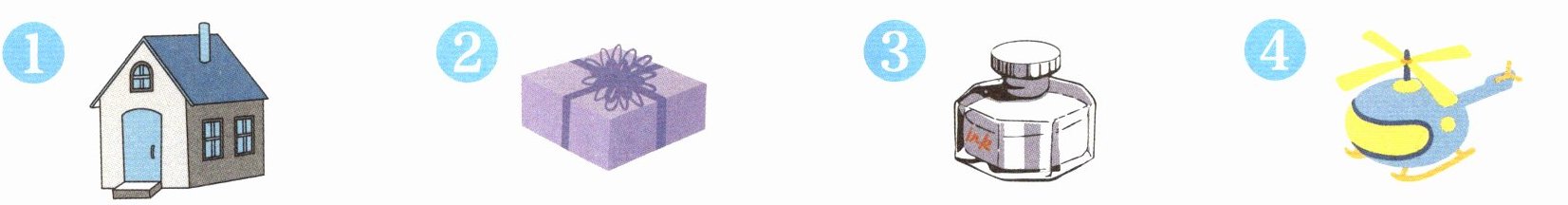 1. house (H h) 2. gift (G g) 3. ink (I i) 4. helicopter (H h)