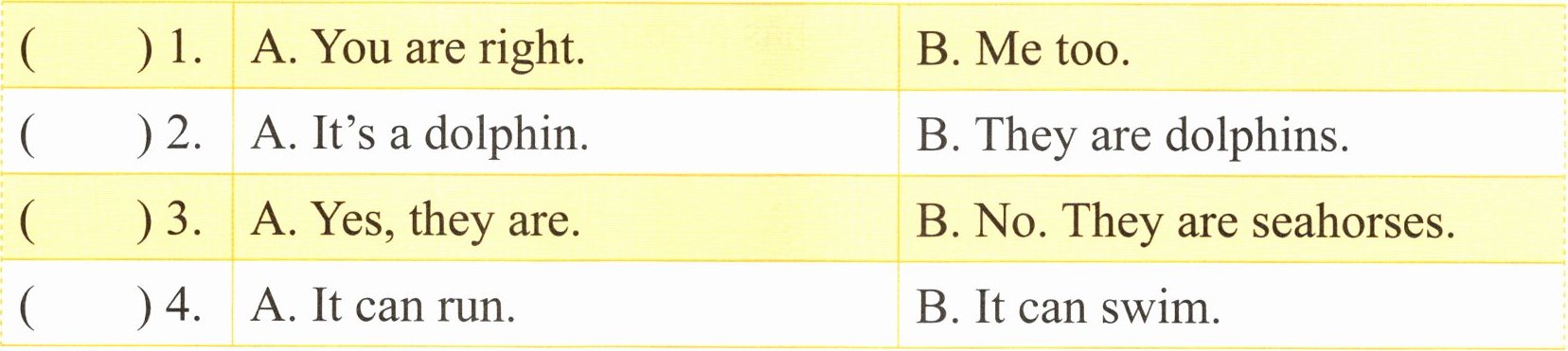 ( ) 2. A. It’s a dolphin. B. They are dolphins.