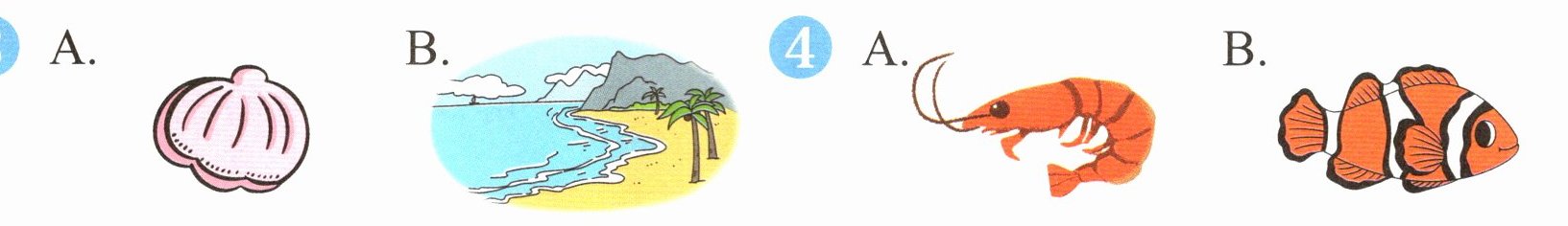 Ⅲ. Listen and circle(Eddie在介绍他的海洋之旅,一起来听一听,圈出正确的答案)