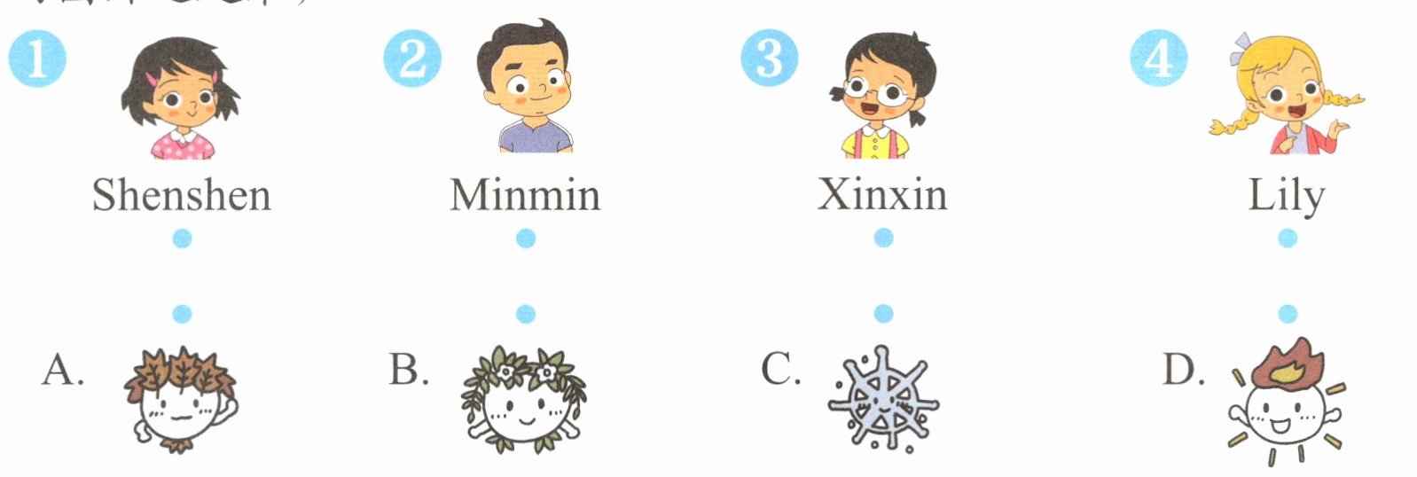 Ⅱ. Listen and match(小朋友们在讨论他们喜欢的季节。听录音,将对应的图片连起来)