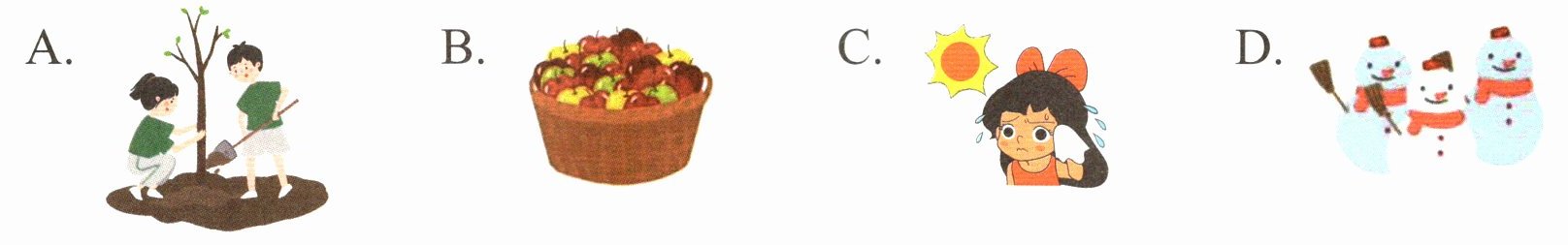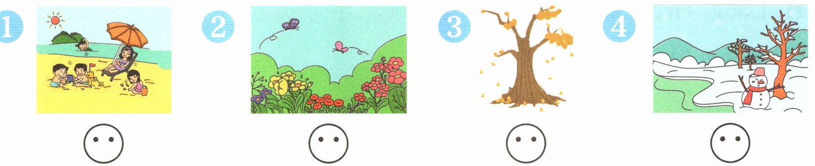 1. D (winter) 2. C (summer) 3. B (autumn) 4. A (spring)