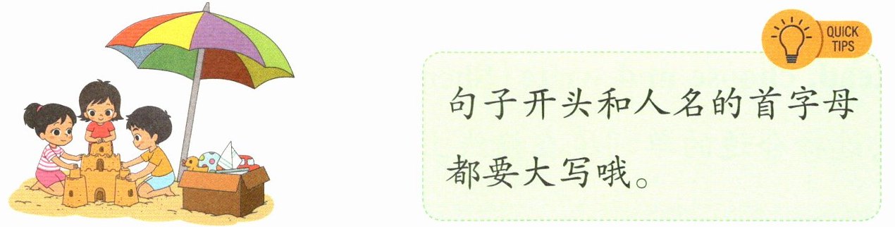 Ⅰ. Read, trace and write(请读一读下面的字母并描写。Sally和朋友们正在海边度假,请观察图片,将正确的首字母填在横线上)