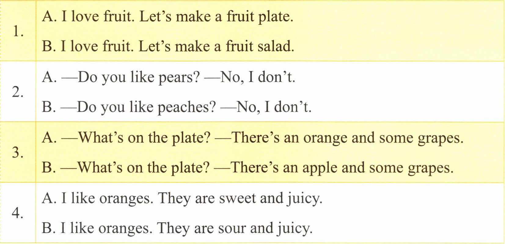 3. A. —What's on the plate? —There's an orange and some grapes.