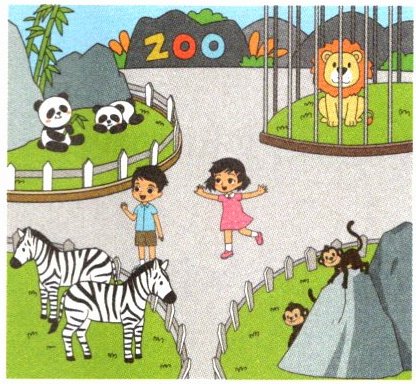 描写略 1. I see a yellow yo-yo. 2. I see two zebras in the zoo.