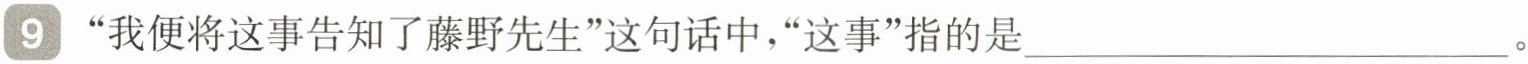 9 “我便将这事告知了藤野先生”这句话中,“这事”指的是______。几个和“我”熟识的同学因这件事,为“我”______。从全文看,藤野先生是个______的人。