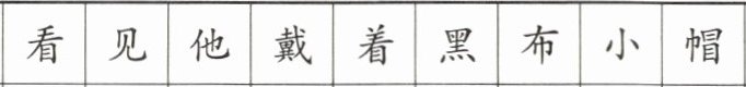 | 我 | 看 | 见 | 他 | 戴 | 着 | 黑 | 布 | 小 | 帽 | , |