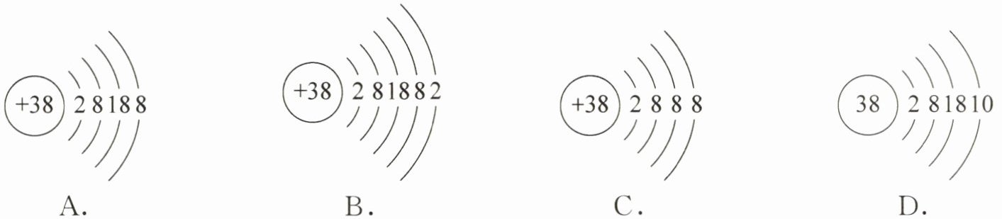 6. 研究发现锶离子$(Sr^{2+})$能改善心肌损伤。锶离子的结构示意图为(