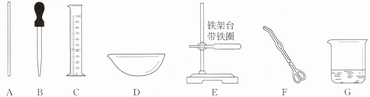 19. 下图展示的是粗盐提纯实验中需要用到的部分仪器,回答下面的问题。