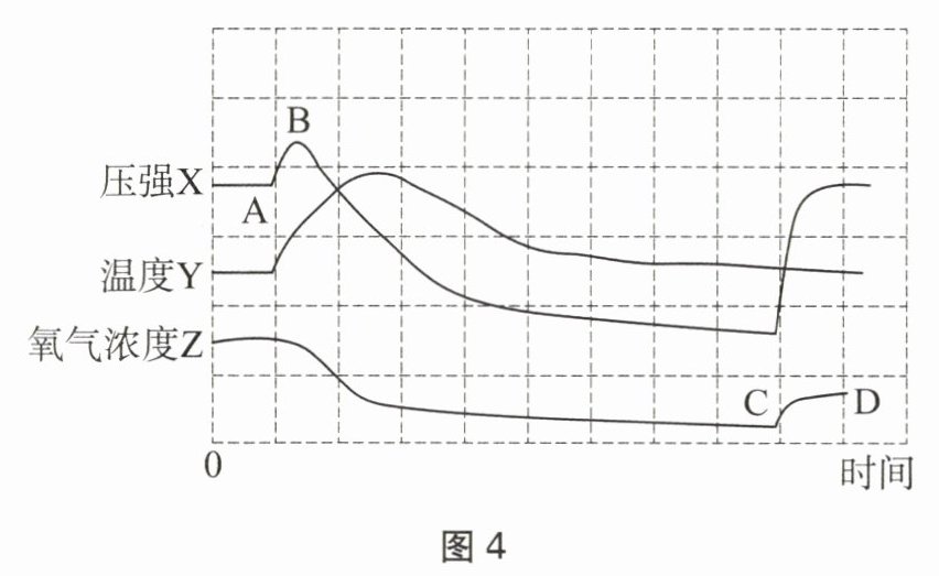 ① 结合X和Y两条曲线,综合分析,图4中AB段压强上升的原因是
