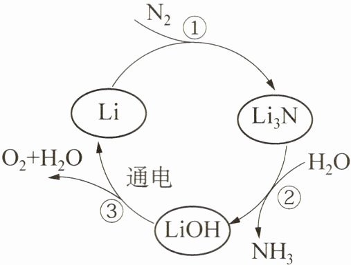 (2)$\text{N}^{3-}$ 分解反应 分解反应是由一种物质反应生成两种或两种以上其他物质的反应,反应③只有一种反应物$\text{LiOH}$,生成了三种生成物$\text{Li}$、$\text{O}_2$、$\text{H}_2\text{O}$,符合分解反应的定义