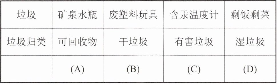 )垃圾 矿泉水瓶; 废塑料玩具| 含汞温度计 剩饭剩菜