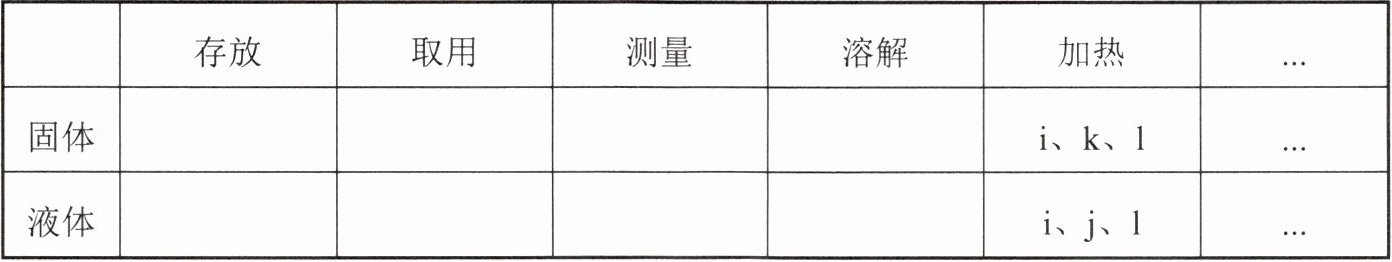 (2)存放:固体:g;液体:h;取用:固体:d;液体:c;测量:f、e;溶解:a、b