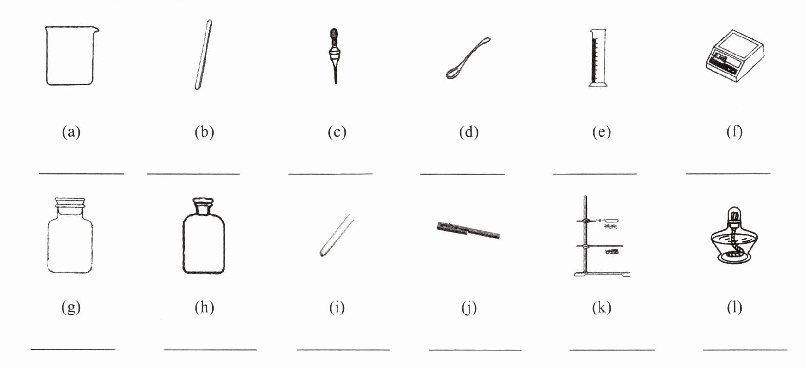 烧杯;玻璃棒;胶头滴管;药匙;量筒;电子天平;广口瓶;细口瓶;试管;试管夹;铁架台;酒精灯