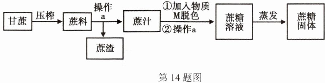 14.蔗糖是光合作用的主要产物,广泛分布于植物体内,特别是甘蔗中含量极高。工业制备蔗糖的流程如图所示。