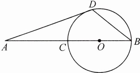 9. 新考向 几何直观 如图,$C$ 为线段 $AB$ 的中点,$BC$ 为 $\odot O$ 的直径,$AD$ 为 $\odot O$ 的切线,切点为 $D$。