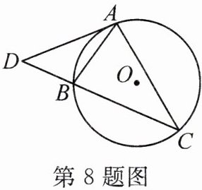 8. 如图,$AB$,$AC$ 是 $\odot O$ 的弦,过点 $A$ 的切线交 $CB$ 的延长线于点 $D$。若 $\angle BAD = 35^{\circ}$,则 $\angle C =$